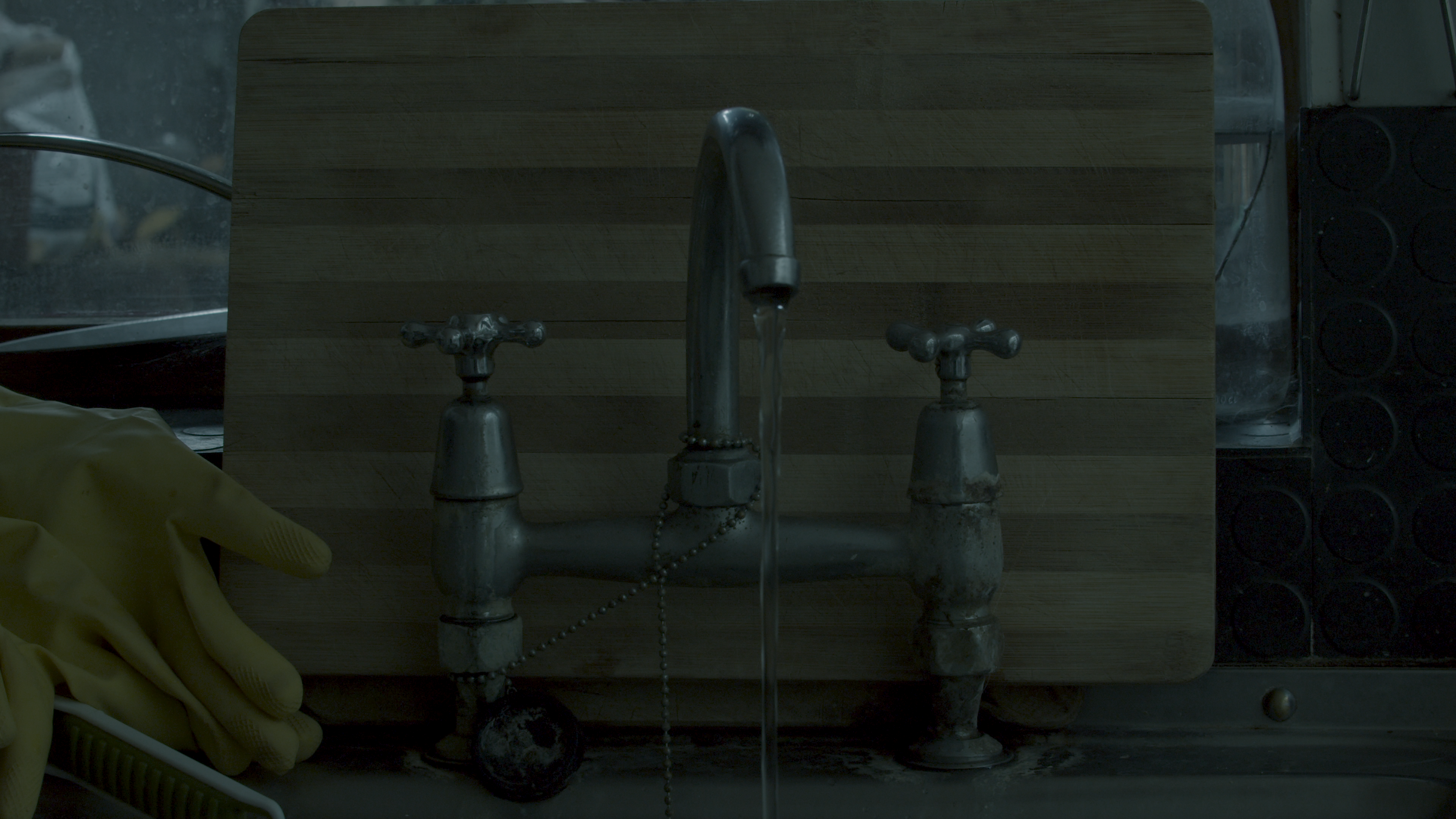leaving the tributary explores liquidity, intimacy and affect, and the unfurling connotations with time and damp interiors due to the energy/climate crisis and poor housing infrastructure. The film combines footage of the river Wandle in South London alongside a scene in which a lover/friend wakes up in a bed of water inside a dark room. A figure is searching along the river at night and in the daytime, discovering fly-tipped garbage and the mechanical noises of factories including the Wandsworth National Grid.